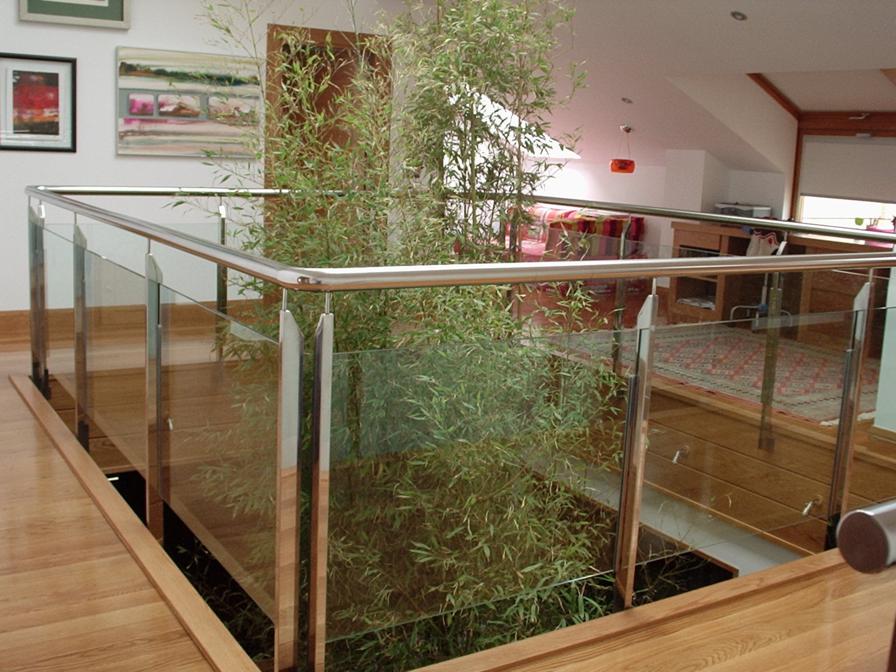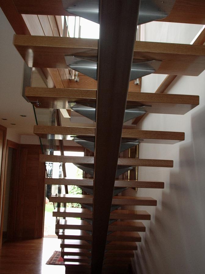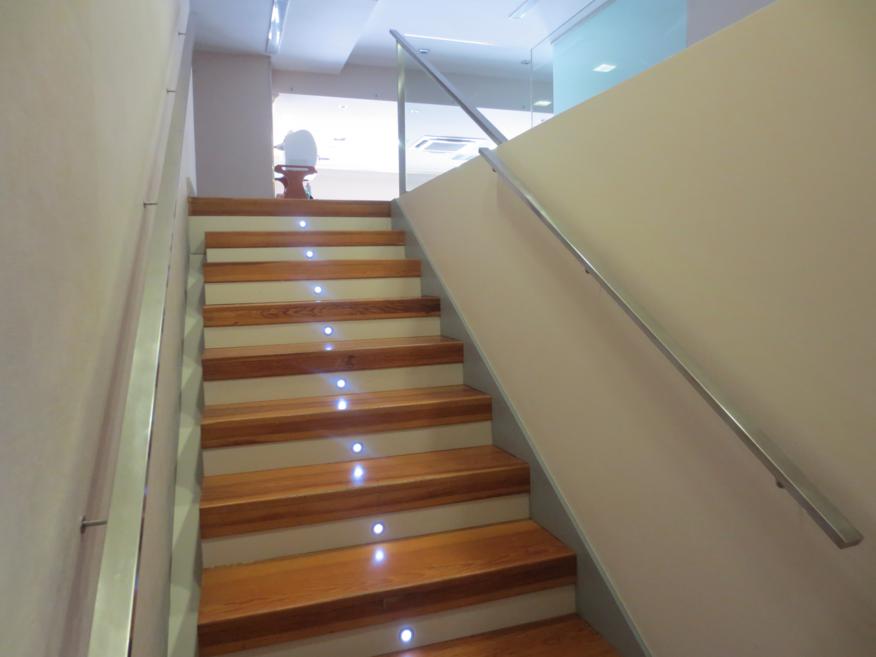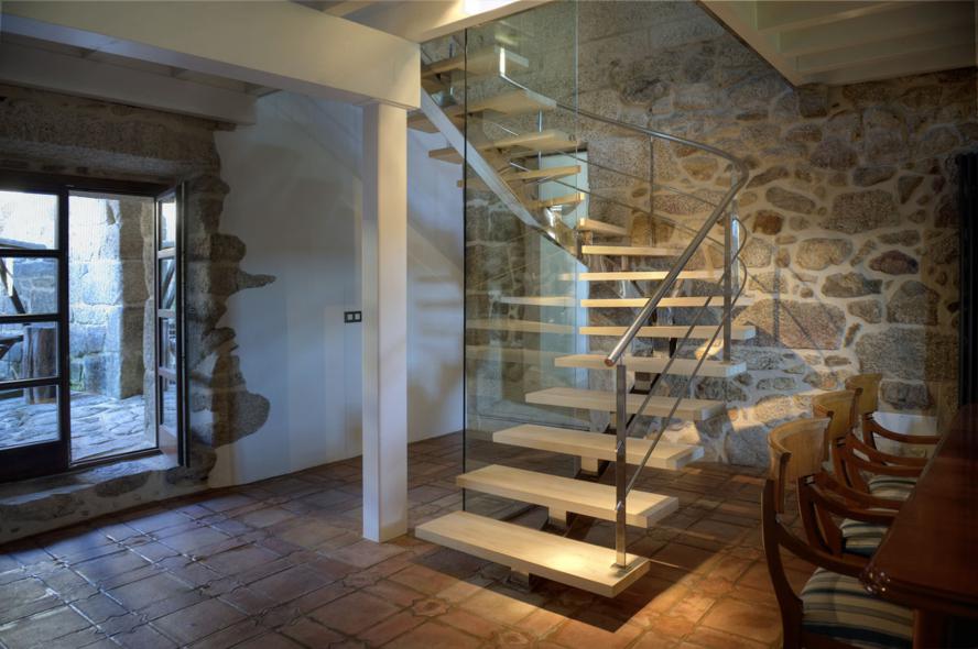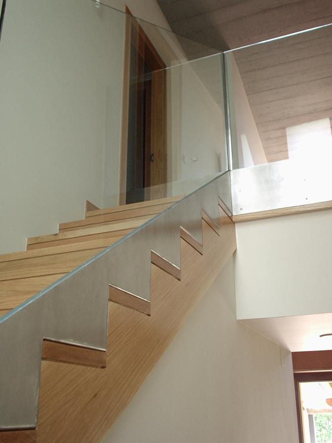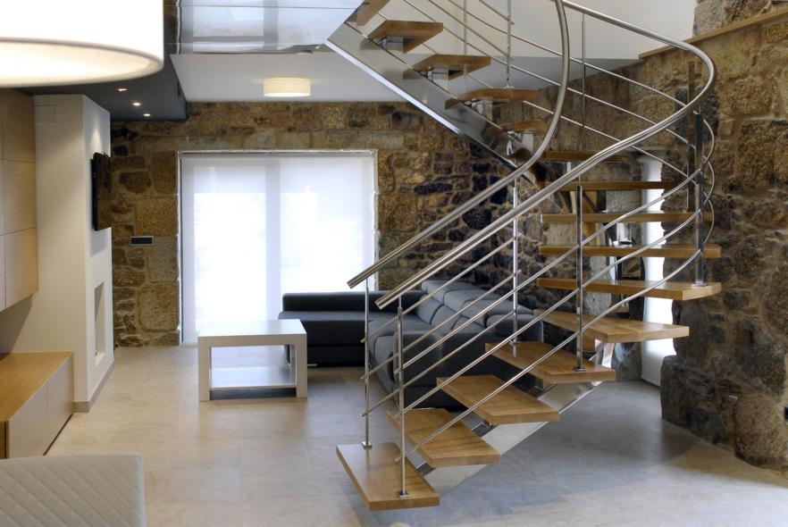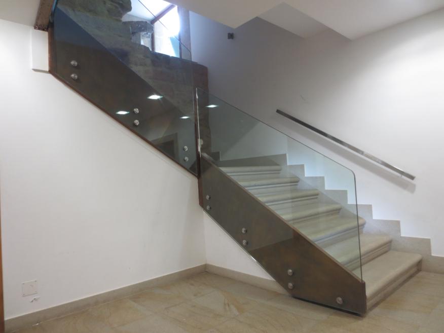 Barandilla inox-vidrio y pasamanos de madera
