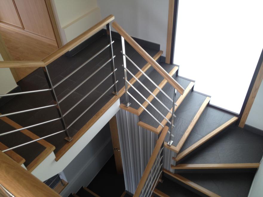 Detalle barandilla inox y pasamanos de madera