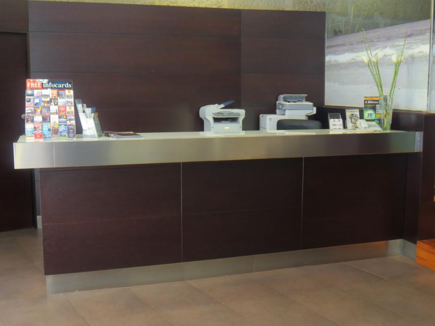 Barandilla inox-madera y rótulo