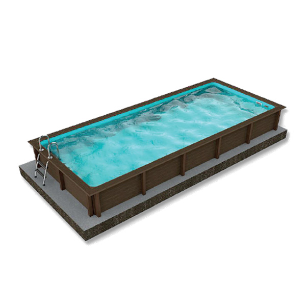 Piscina modular compuesta por una estructura de acero galvanizado y travesaños de hormigón teñido en masa con efecto madera. Puede colocarse en superficie, semienterrada o enterrada completamente. Interior del vaso con liner de gran resistencia y calidad. Incluye sistema de filtrado y todo lo necesario para poder disfrutarla. 2x3m